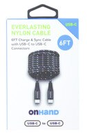 SKU: OnHand Nylon Charge and Sync Cable USB-C to USB-C-6ft-Black